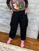 Introducing our Jen Black Joggers - made with 100% POLYESTER lining and 100% RAYON for ultimate comfort and durability. These black eyelet jogger pants are a must-have addition to any wardrobe. Upgrade your style game with these versatile and high-quality joggers.