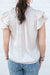 Elevate your wardrobe with this expertly crafted blouse that balances sophistication with effortless comfort. The notched V-neckline and delicate ruffled stand collar create a refined focal point, while tiered flutter sleeves add movement and visual interest. Strategic gathering at the front and back yokes ensures a relaxed, flattering fit that moves with you throughout the day. Crafted from lightweight, textural fabric, this piece transitions seamlessly from office to weekend occasions.