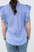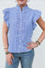 Blue Pinstripe Button Down Ruffle Trim Blouse