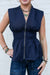The Navy Timberline Sleeveless Blouse combines refined simplicity with architectural detail. This lightweight woven piece features a striking smocked waist that cinches the silhouette, paired with a subtle peplum hem for added dimension. The front zipper closure ensures easy styling, while the unlined construction keeps the piece breathable and comfortable. Perfect for layering or wearing solo, this non-sheer top transitions effortlessly from office to evening.