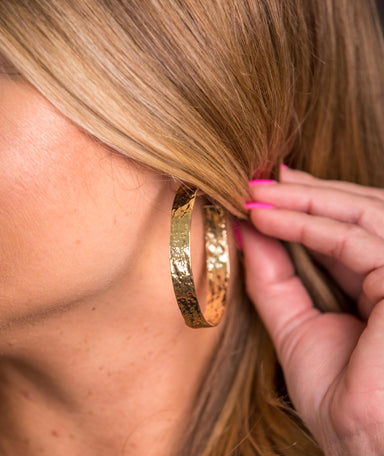 Elevate your everyday style with our 2" Silver Hammered Hoop Earrings. Featuring a textured hammered finish and classic hoop silhouette, these earr...