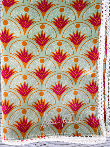 Hand Drawn Designs Measure 24x24 inches Has a crochet detailing around the edges 100% Silk