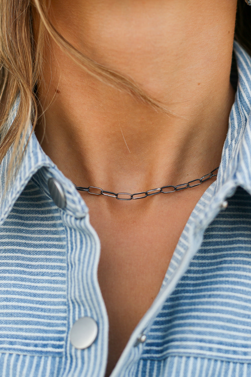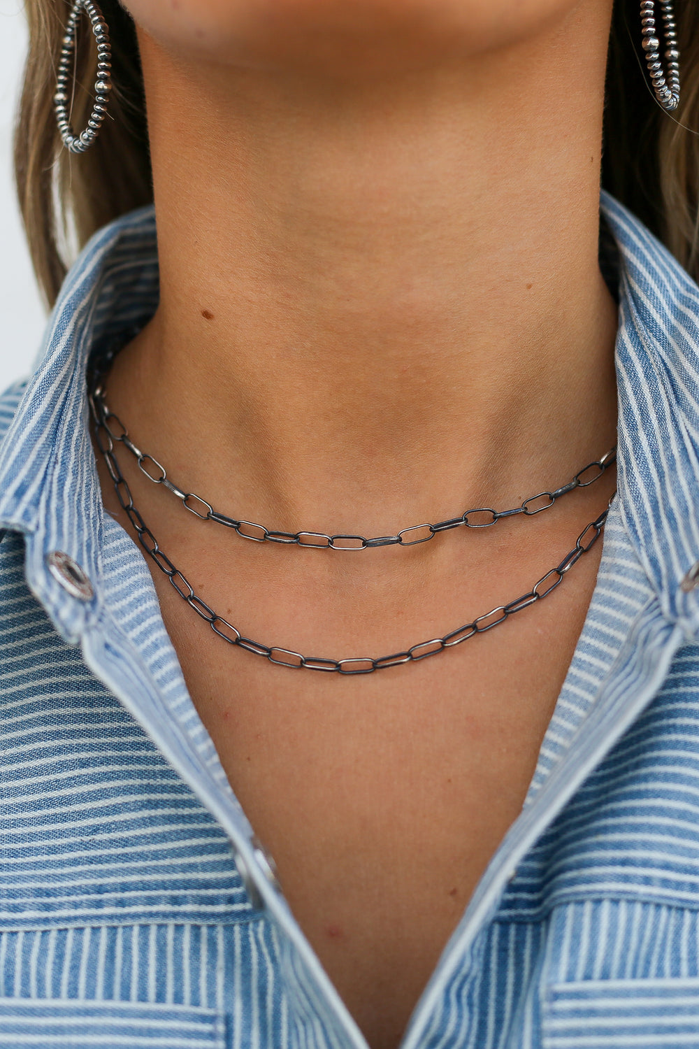 Link measures 10mm end to end, handmade and sterling silver. Great for layering, lightweight and can have a pendant added. Available in 16 inch and 18 inch.