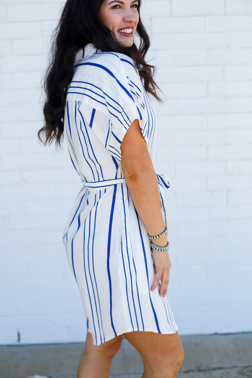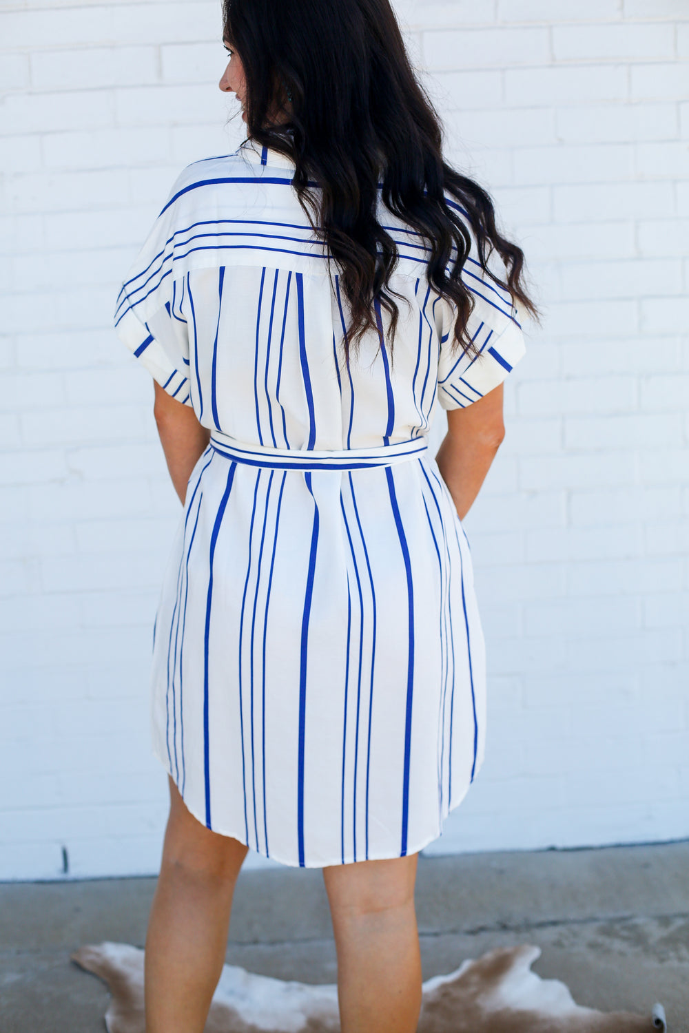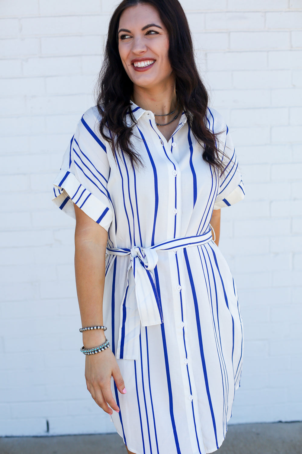 Indulge in the exquisite detailing of this dress, complete with a full row of buttons and a detachable tie at the front. It's all in the details with this must-have piece.