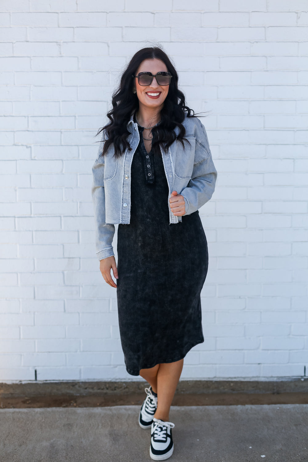 Black Washed Thermal Dress