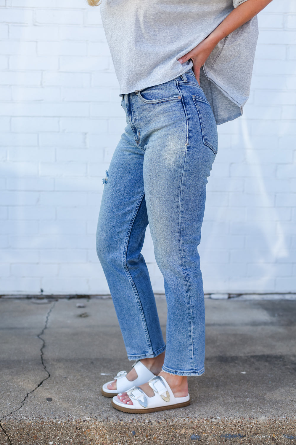 Elevate your style with our Clara 90's High Rise Jeans - the epitome of chic and trendy fashion! These cropped jeans from Dear John will make you feel confident and fashionable.