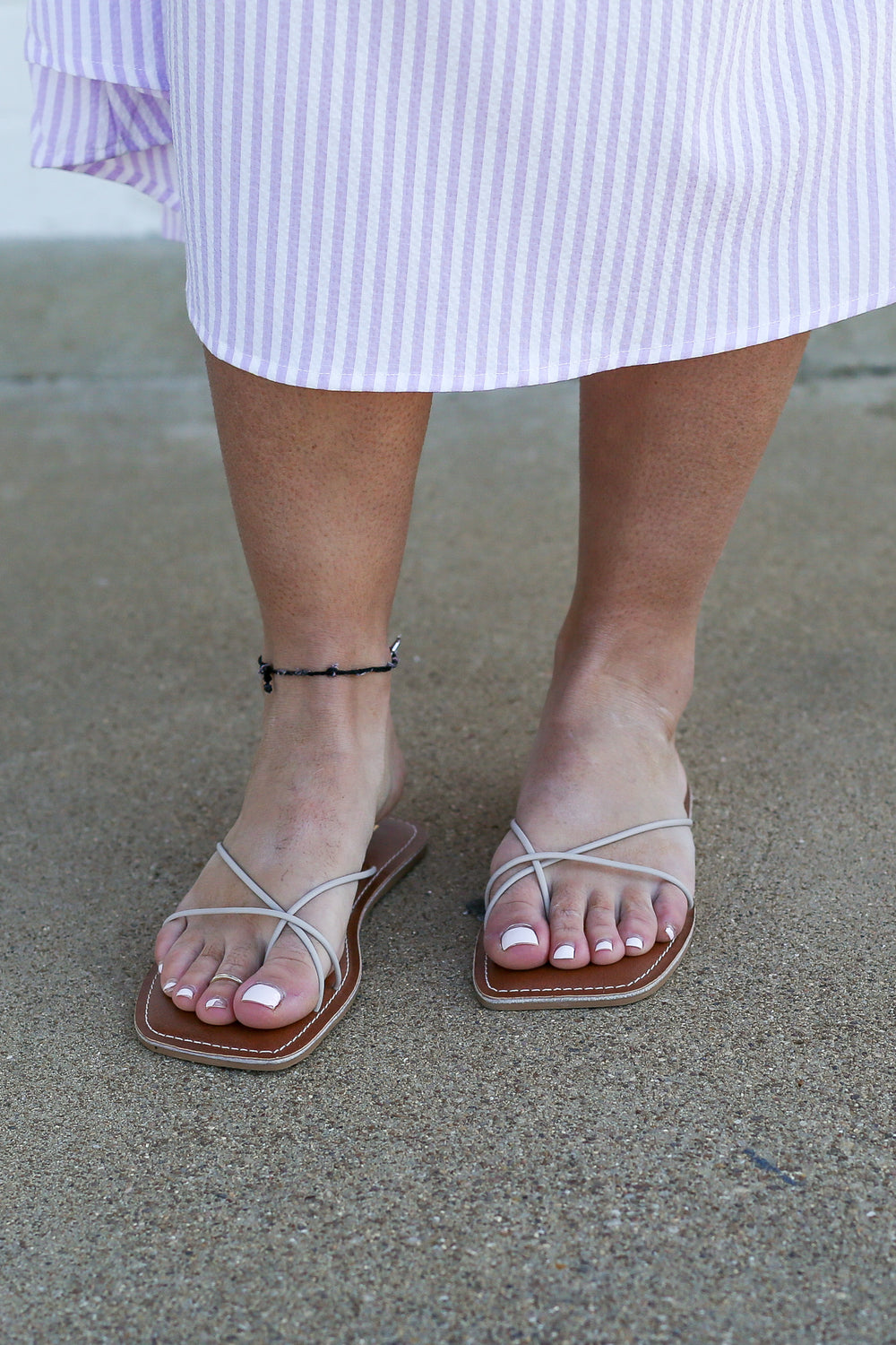 Strappy flat sandal.