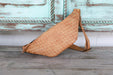 Woven body bag. Inside zip compartment with cell and slip pocket. Front side zipper pocket. Adjustable belt strap. 100% organic cotton lining. APPROX. MEASUREMENTS || 8h x 1d x 10w