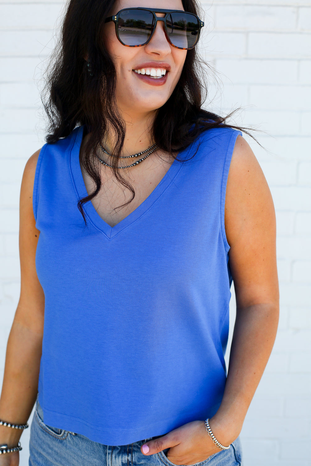 Jolie Blue V-Neck Tank