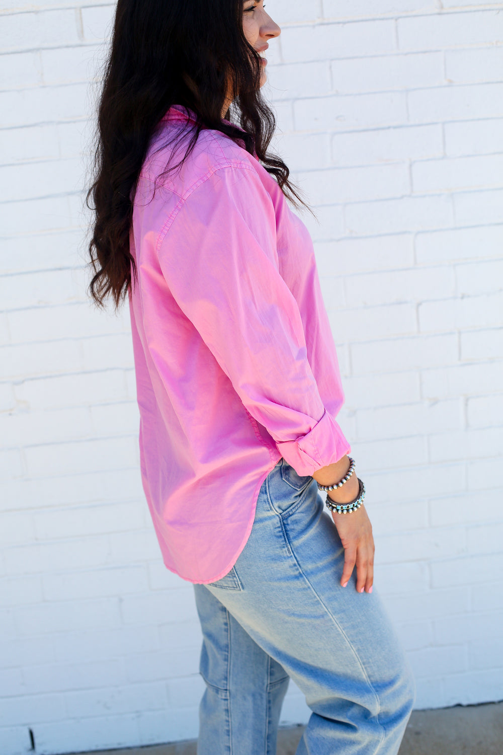 The Lolita button-up long sleeve boyfriend fit shirt is an essential addition to every closet. Designed with a relaxed silhouette, it offers a perfect balance between style and comfort, making it a must-have for those seeking comfortable yet functional clothing. The classic button-up front with a crisp collar and adjustable sleeve cuffs adds a touch of sophistication, ensuring this shirt is a versatile outfit choice for both casual and chic occasions.