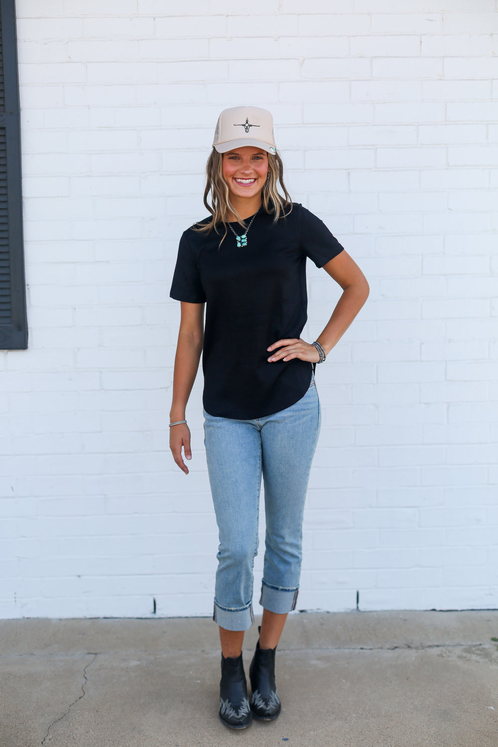 This essential loose-fit tee is ideal for layering or wearing solo, making it an indispensable addition to your wardrobe.