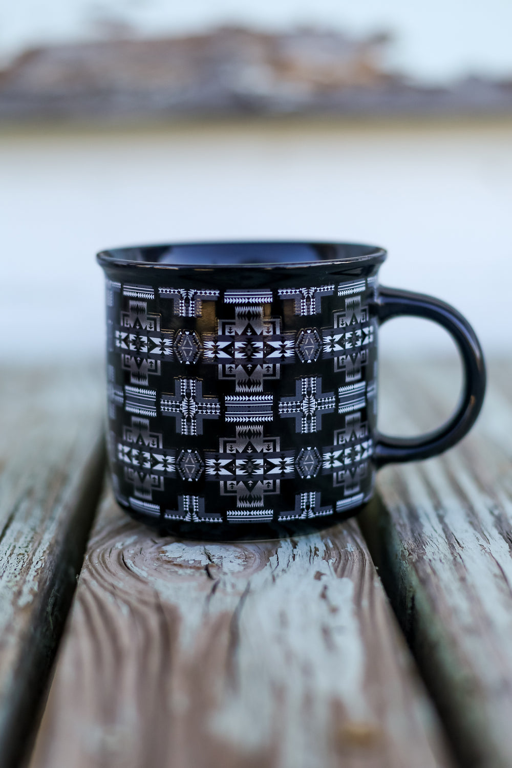 Experience the unique charm of our Black Aztec Ceramic Mug! This mug is a must-have for any coffee or tea lover, with its eye-catching design and sturdy ceramic material. It's perfect for use at home or in the office, and makes a great gift for friends and family. Elevate your daily routine with this stylish and functional mug today!