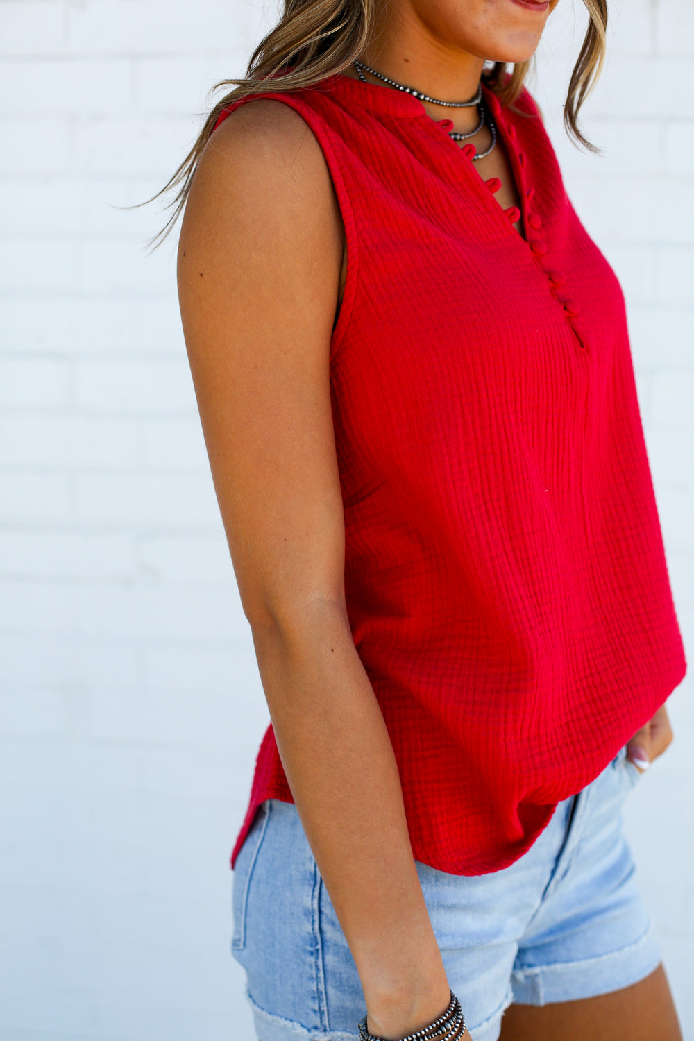 The Raja Salsa Tank embodies artistic fashion, providing women with a comfortable yet stylish clothing option. Its relaxed fit gracefully drapes over the body, offering all-day comfort without sacrificing chic appeal. The sleeveless design and classic button-up front make it ideal for transitional layering or as a standalone piece. This versatile top effortlessly blends a laid-back aesthetic with a polished finish, making it an essential addition to any wardrobe.