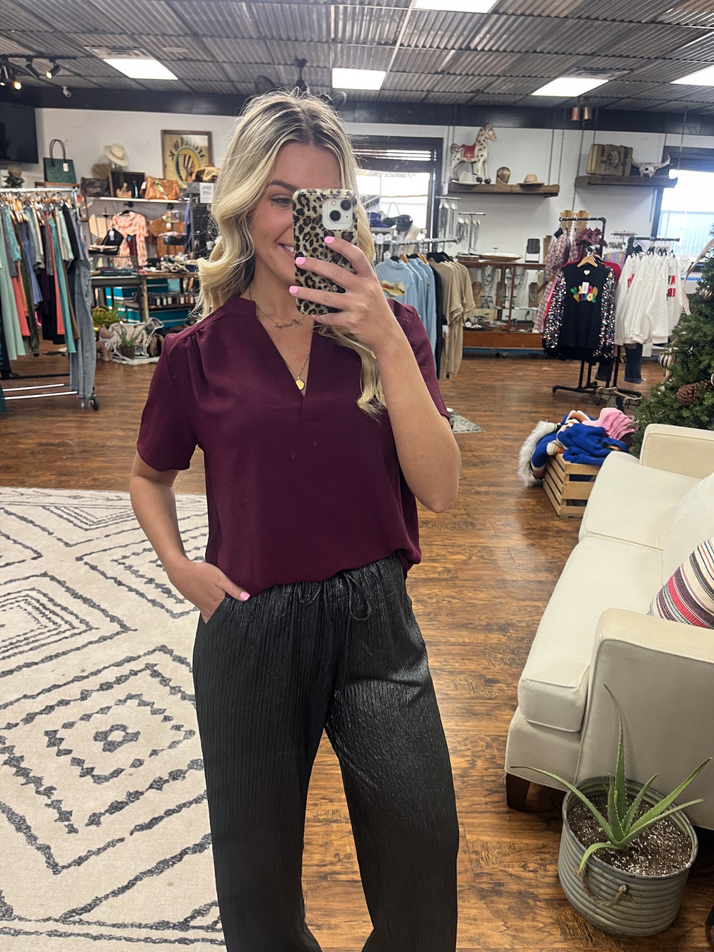 Loosen up in these breezy trousers with stretchy waist and pull-draw string. Pair it with the top for a spot-on ensemble. The hue is as radiant as a Lone Star evening sky!