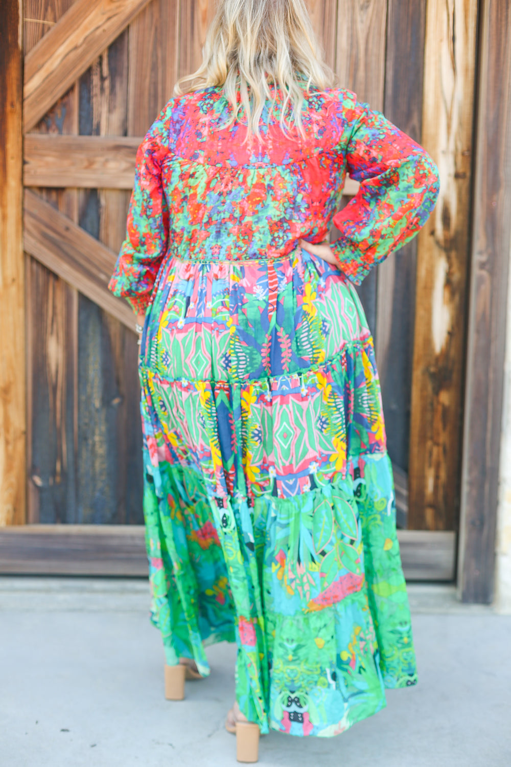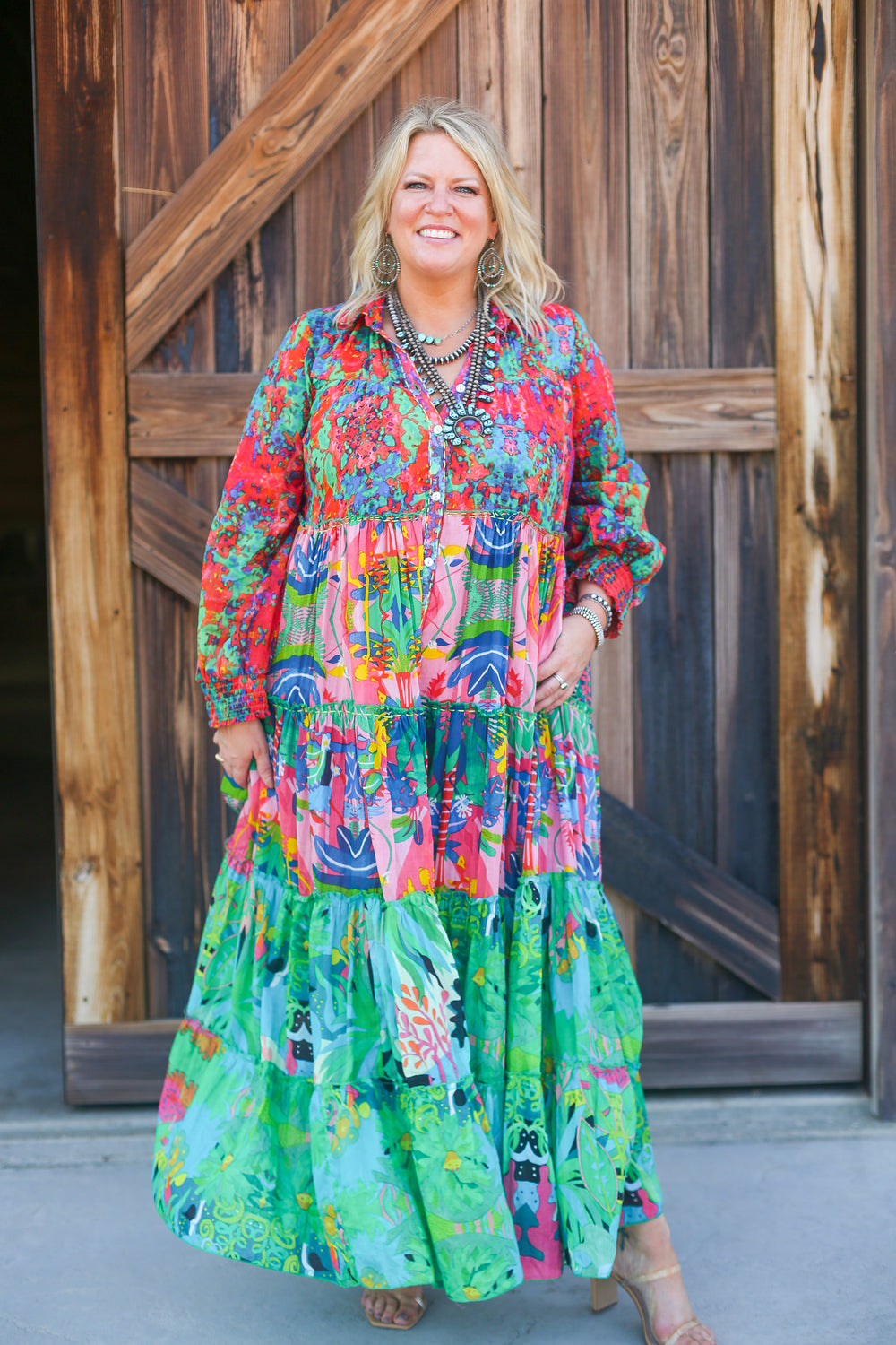 This maxi dress showcases a stunning array of vibrant hues and an eye-catching pattern that sets it apart from ordinary options. The Kai's tiered design creates a flattering silhouette that will turn heads wherever you go.
