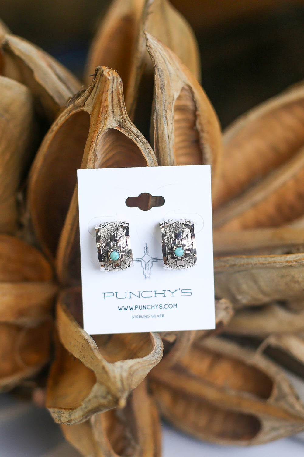 These have aztec stamping on them and have Turquoise stone in the middle.